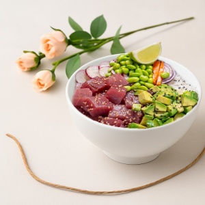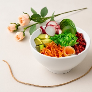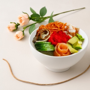 Внешний вид продукции может отличаться от изображений, представленных на сайте. Некоторые блюда могут содержать аллергены: рыбу, сою, кунжут, яйцо, глютен, молочные продукты и орехи. Если у вас есть аллергия — сообщите об этом при оформлении заказа. Мы постараемся учесть ваши пожелания и особенности.